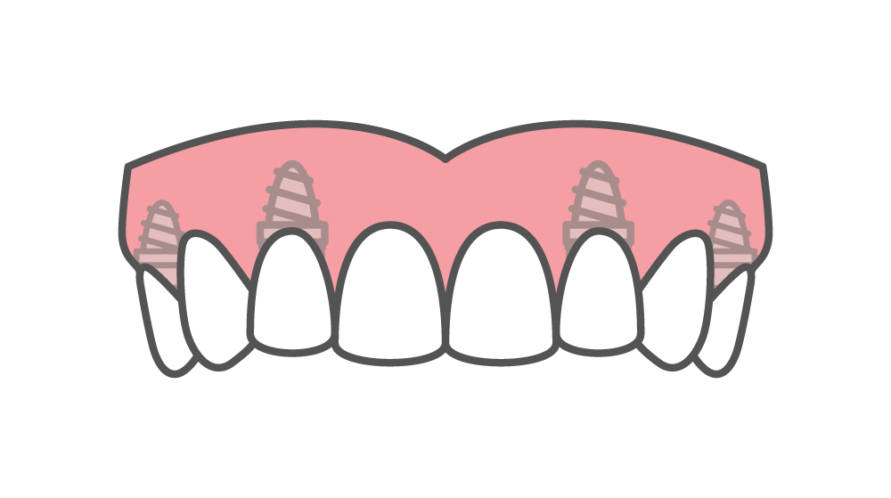 • This is a semi-permanent solution, which means that the “teeth” on top of the implants cannot be removed by the person – but they can be removed by the dentist if necessary, and for cleaning.