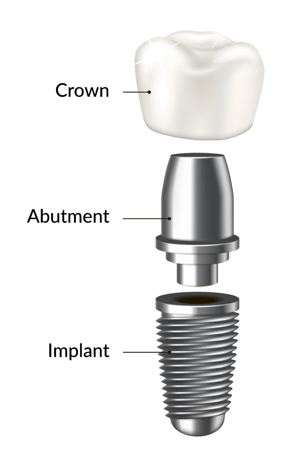 Each dental implant is made up of three essential parts: