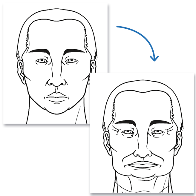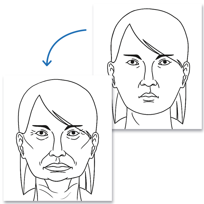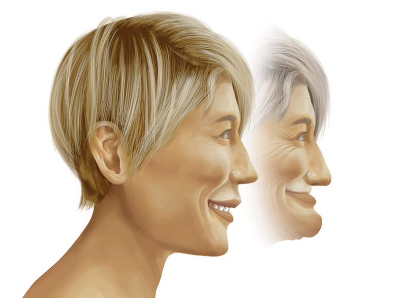 Missing teeth cause bone loss. Without stimulation from the roots of your teeth, your jaw bone will deteriorate and lose height in the back, which can give you a "witch-like" appearance, as illustrated in the above image.