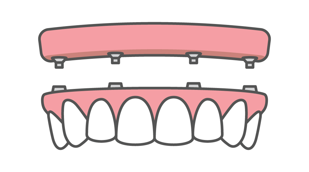 Snap-on dentures, also called implant-supported dentures or over-dentures, are held in place not just by the gums, but by implants that are secured in the jawbone.